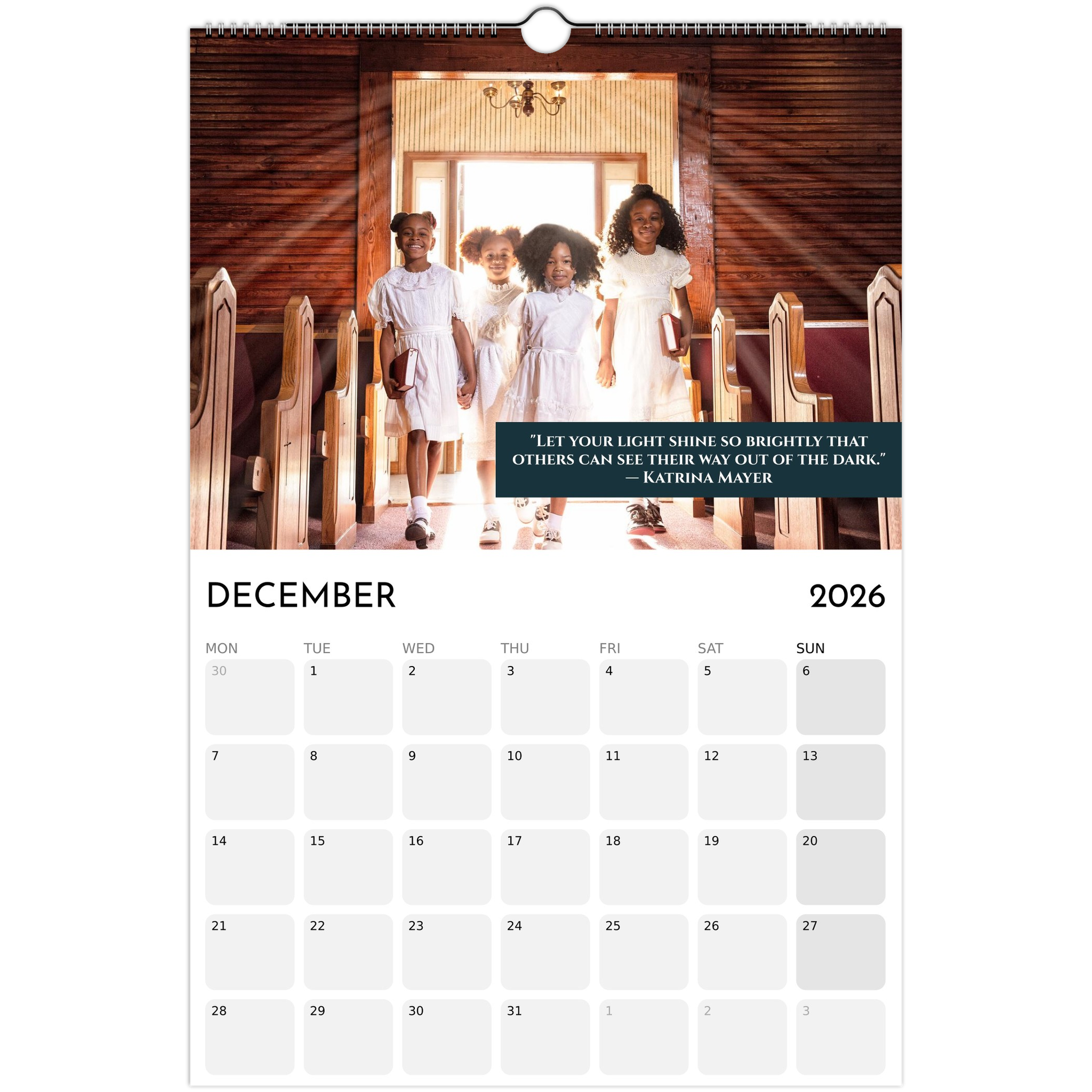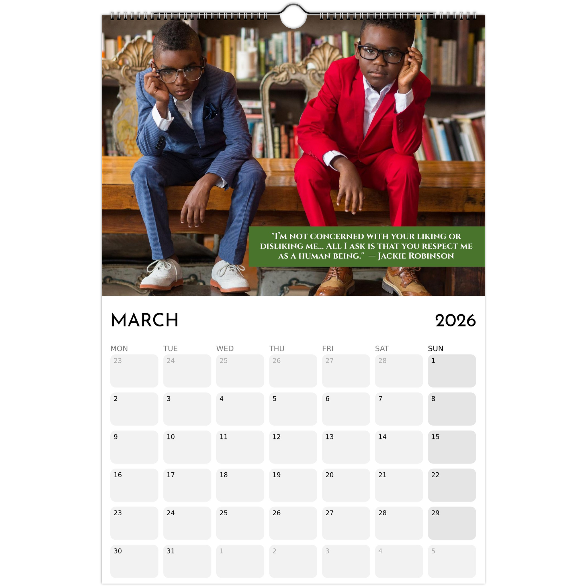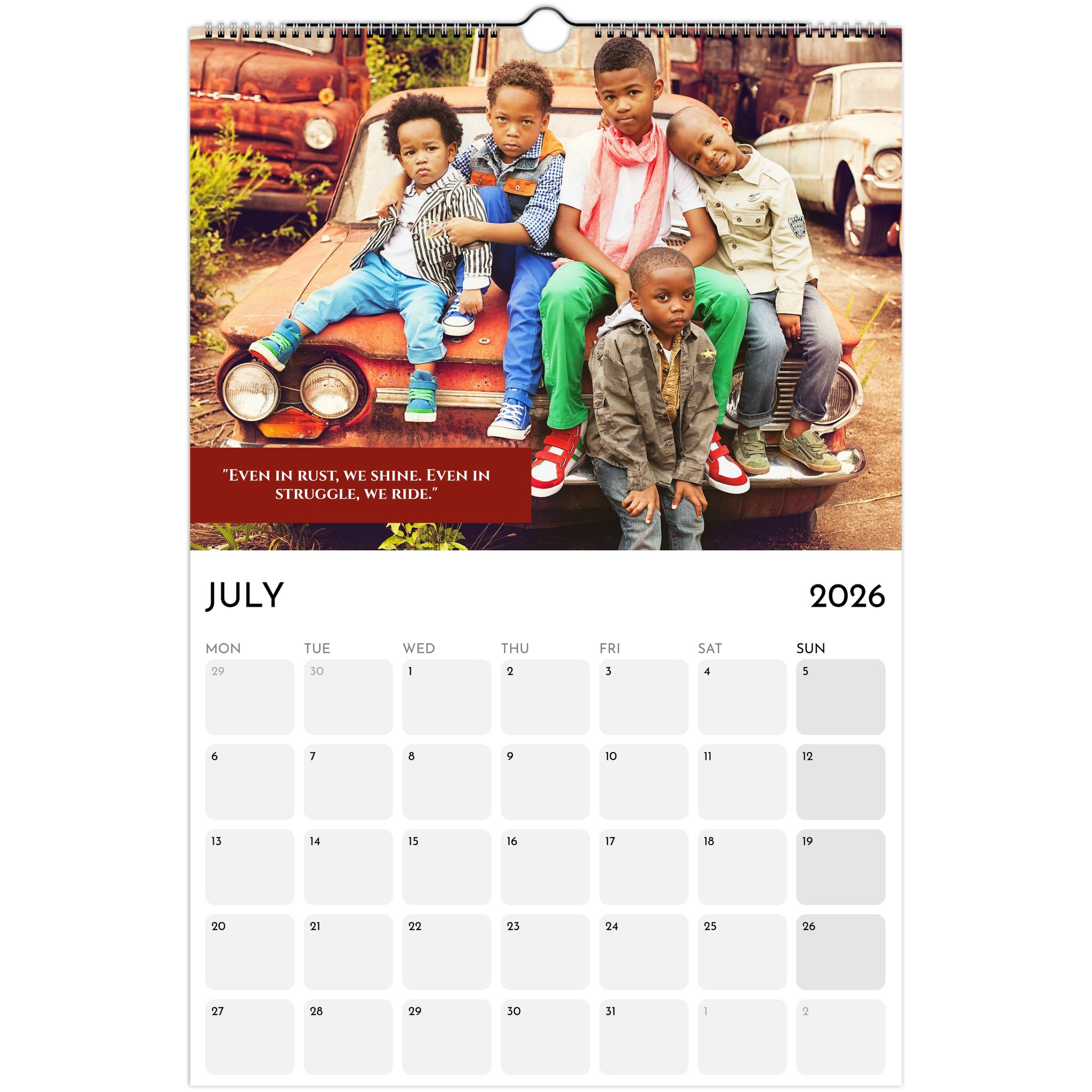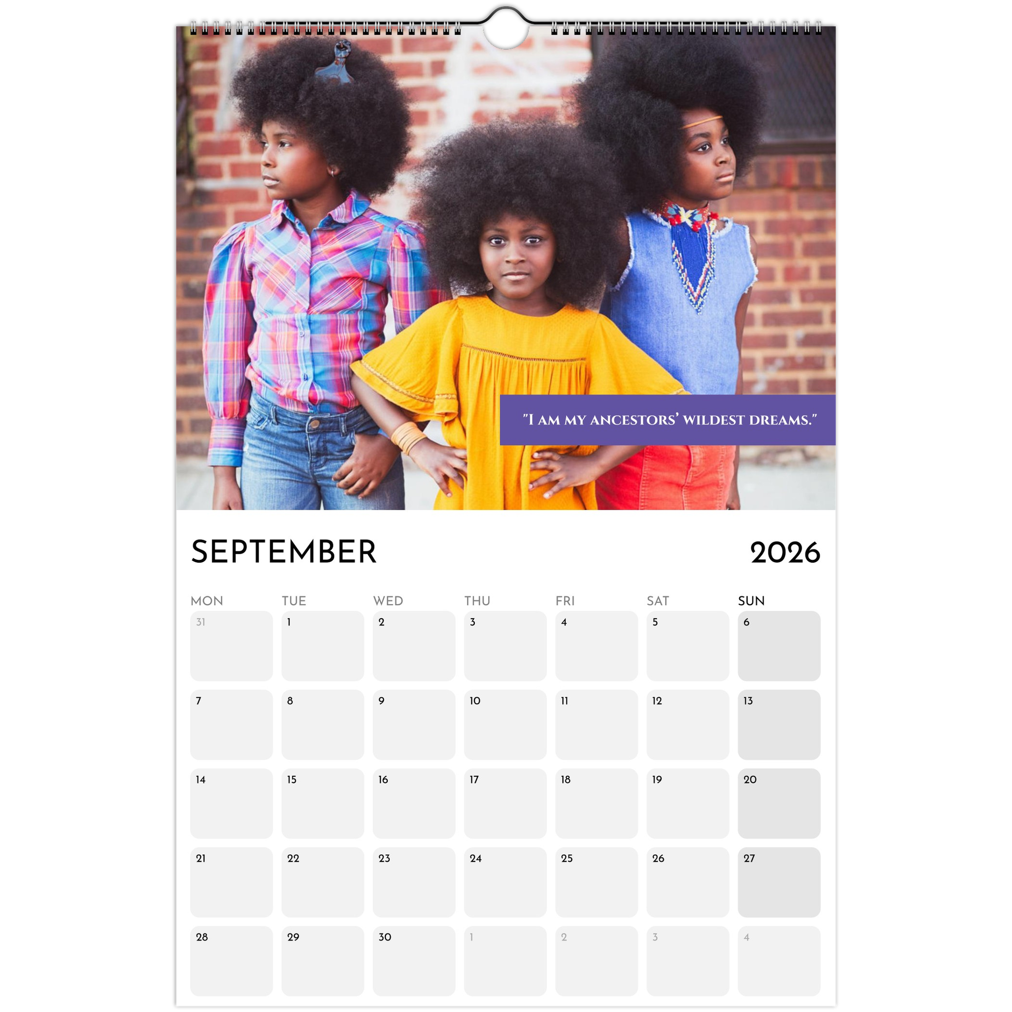Make a bold statement with our large-format 2026 CreativeSoul Calendar. Measuring 11 x 16.5 inches, this version features one-sided prints on 14 premium pages, with a centered hole for easy hanging. Designed with a sleek black twin-loop binding and clean layout, it's perfect for showcasing stunning imagery month by month. Back sides are blank.