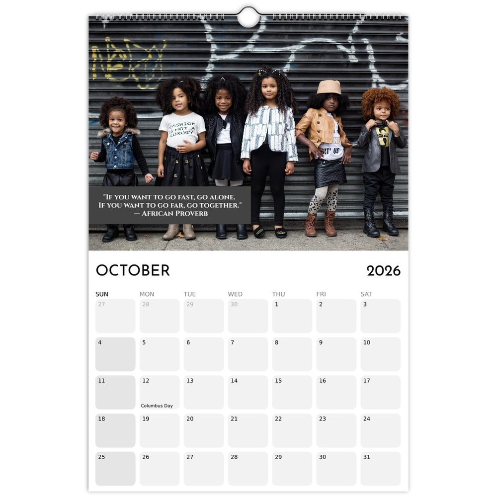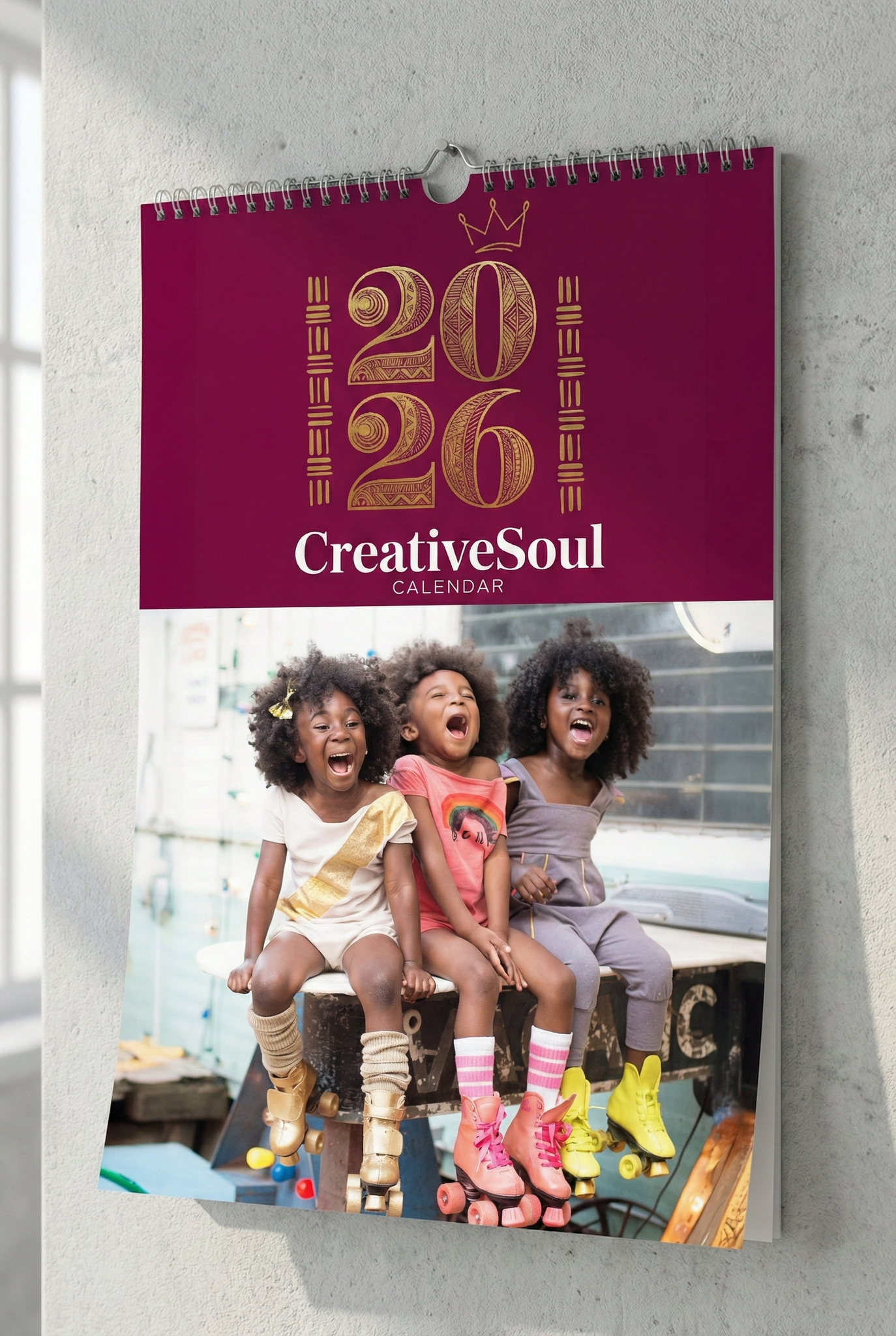 Make a bold statement with our large-format 2026 CreativeSoul Calendar. A3 (vertical), and 14.8x40 cm. This version features one-sided prints on 14 premium pages, with a centered hole for easy hanging. Designed with a sleek black twin-loop binding and clean layout, it's perfect for showcasing stunning imagery month by month. Back sides are blank.